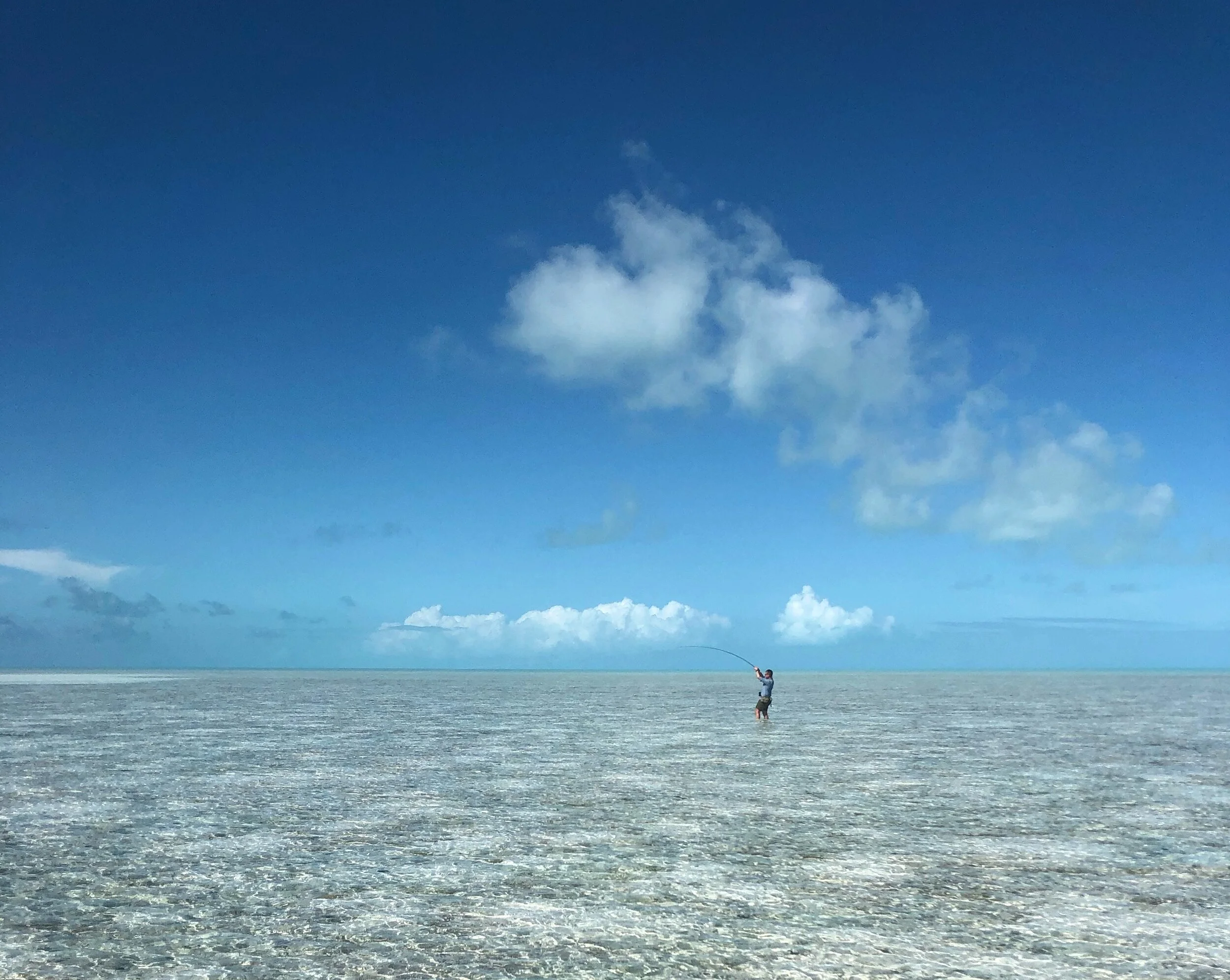 I’ve written about the pleasures and difficulties of catching a bonefish before, here and here . It’s certainly intimidating for the first-timer. You are trying to cast in the wind to a fish you can barely see. You spend most of your time searching, wading in near silence, looking for a fish to cast to. When it’s cloudy and you can’t see them this feels a little bit like a punishment. In time, you get used to that. To finally have a bonefish on the line is to be connected to something truly wild—it swims away from you on an explosive run, reaching the speed of a cheetah, and your reel fizzes and feels like it might burst into flame. The thrill is real.